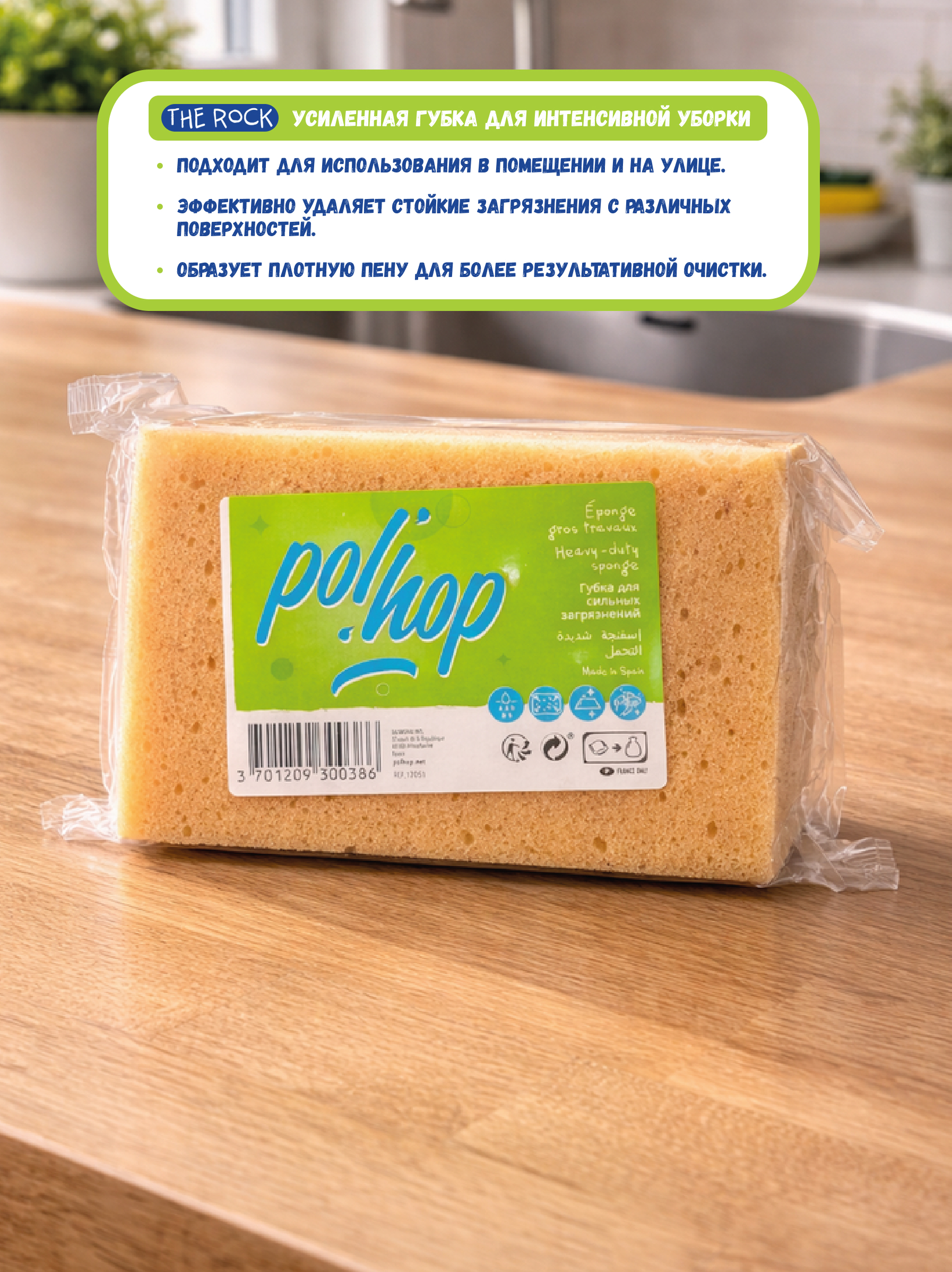 - Повышает эффективность моющих средств – структура губки способствует образованию обильной и равномерной пены, что помогает экономично расходовать средство и ускоряет процесс очистки.