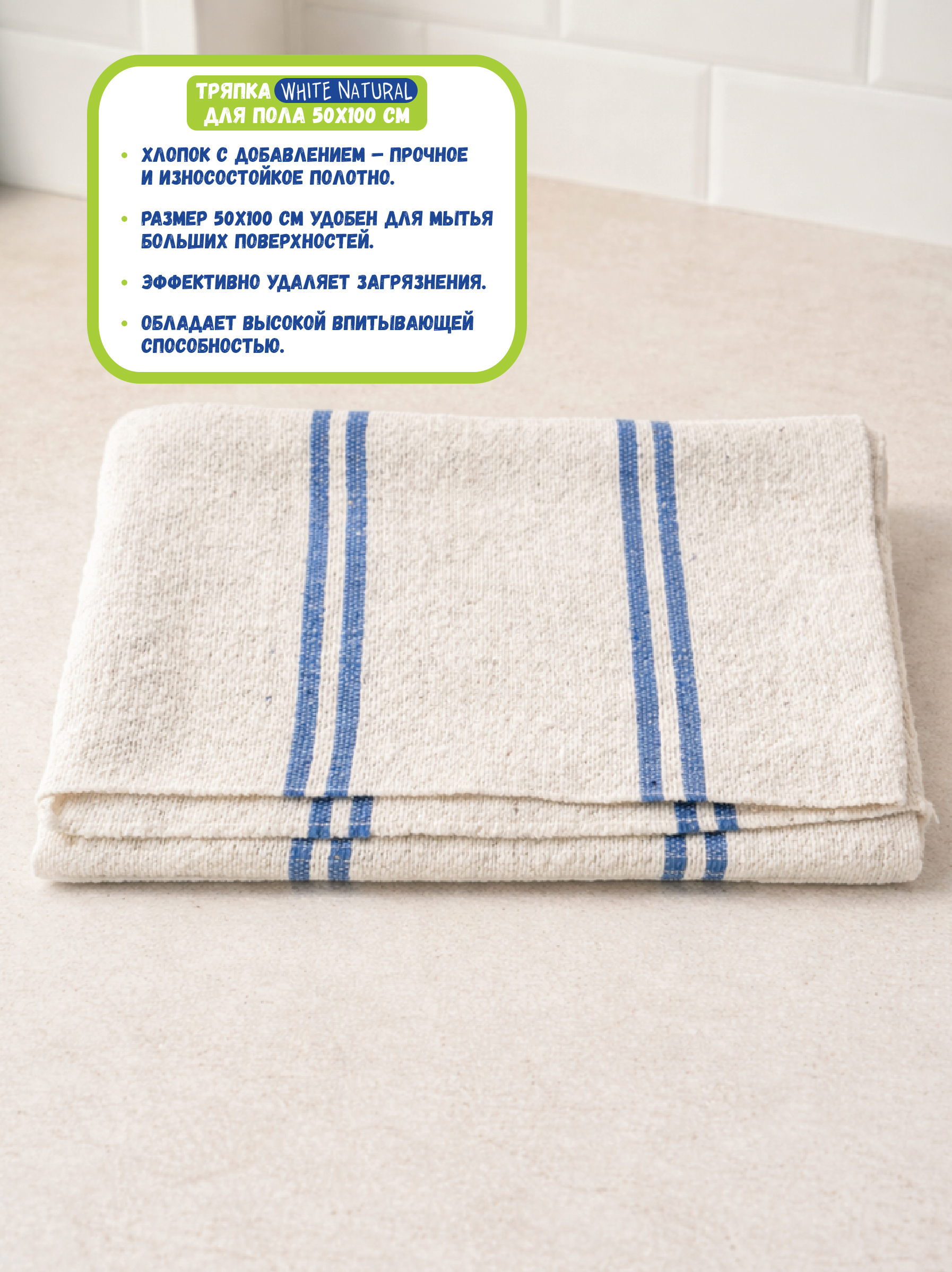Тряпка для пола White Natural предназначена для влажной уборки различных типов напольных покрытий. Подходит для плитки, ламината, линолеума, деревянных и других твердых поверхностей. Натуральные волокна обеспечивают хорошую впитываемость и устойчивость к регулярной эксплуатации.